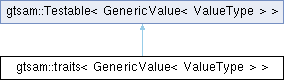| Public Member Functions inherited from gtsam::Testable< GenericValue< ValueType > > | |
