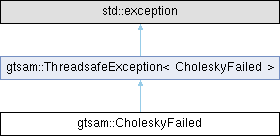 | Protected Types inherited from gtsam::ThreadsafeException< CholeskyFailed > | |