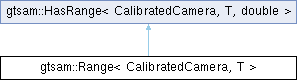| Public Member Functions inherited from gtsam::HasRange< CalibratedCamera, T, double > | |