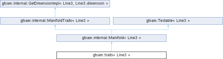 | Public Types inherited from gtsam::internal::ManifoldTraits< Line3 > | |