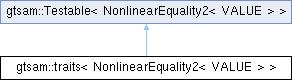 | Public Member Functions inherited from gtsam::Testable< NonlinearEquality2< VALUE > > | |