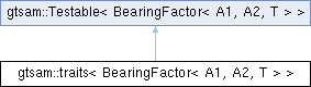 | Public Member Functions inherited from gtsam::Testable< BearingFactor< A1, A2, T > > | |