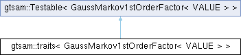 | Public Member Functions inherited from gtsam::Testable< GaussMarkov1stOrderFactor< VALUE > > | |