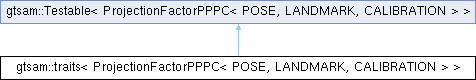 | Public Member Functions inherited from gtsam::Testable< ProjectionFactorPPPC< POSE, LANDMARK, CALIBRATION > > | |